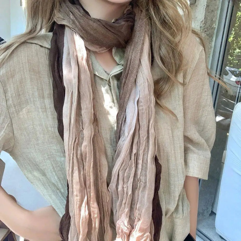 La polyvalence de cette écharpe en coton et lin dégradé se manifeste aussi dans ses usages. Elle peut être portée comme simple foulard de mode, mais aussi comme châle lors d’événements élégants tels que les mariages ou les anniversaires. Elle peut servir de couverture légère dans les transports, de paréo chic sur la plage, ou même de décoration textile dans la maison, posée sur un canapé ou utilisée comme plaid improvisé. Cette capacité à remplir plusieurs rôles à la fois illustre son caractère multifonction et justifie sa place incontournable dans toute collection personnelle.